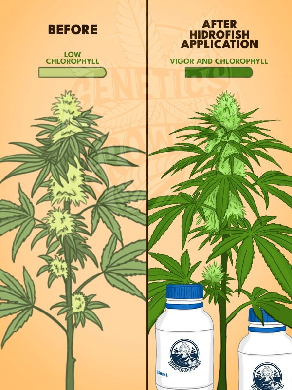 In cannabis cultivation, Hidrofish is primarily used during the vegetative stage, where its nitrogen and calcium content supports structural growth. Additionally, amino acids contribute to: